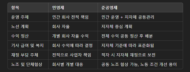 민영제와 준공영제의 핵심 차이점 정리
