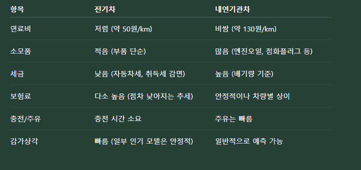 전기차와 내연기관차 유지비 종합 비교