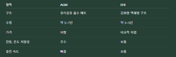 AGM 배터리와 EFB 배터리의 차이는?