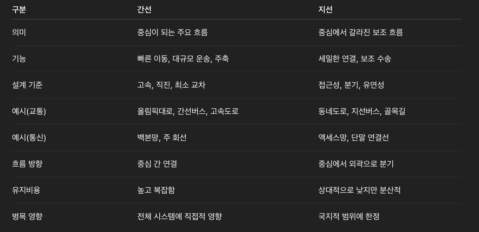 이런 구조는 교통뿐만 아니라 통신, 항공, 물류 시스템까지 모두 동일하게 적용돼요.