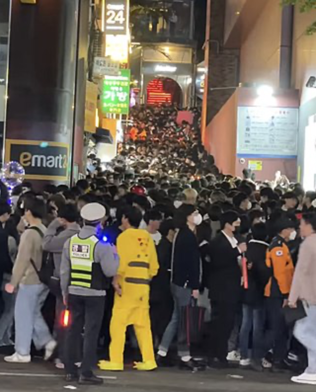 핼러윈 인파가 상하 방향으로 뒤엉키면서,